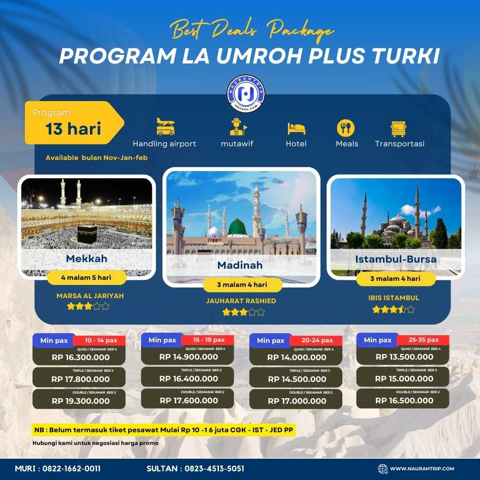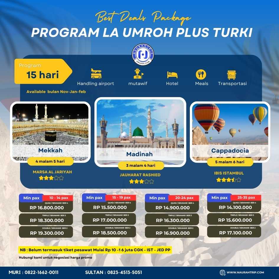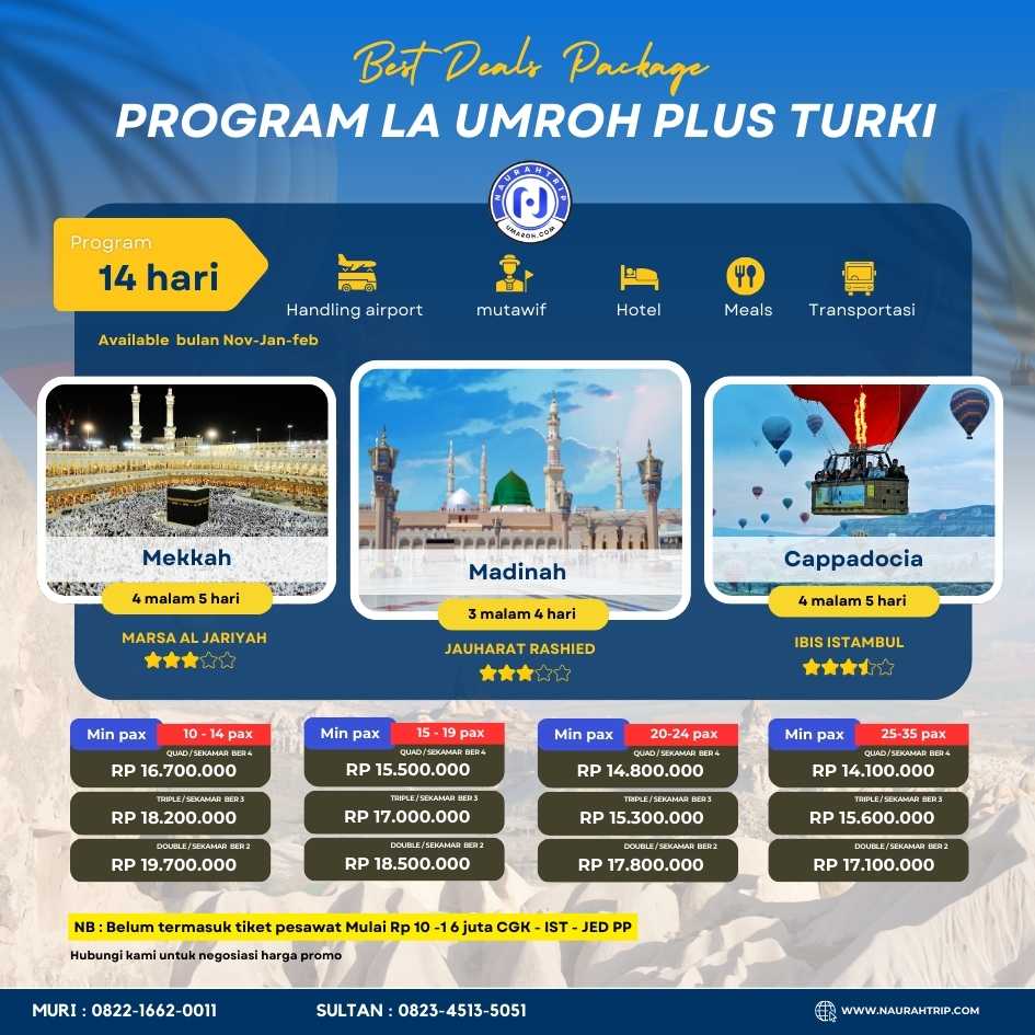 Hubungi kami Naurah trip ahlinya umroh plus turki termurah sejagat raya …….