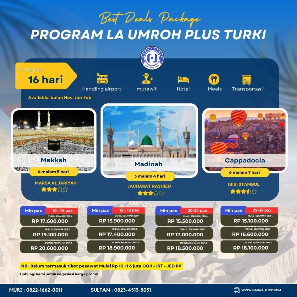 PAKET LA UMROH PLUS TURKI, KAMU CUKUP CARI TIKET DAN NAURAH TRIP YANG SIAPIN AKOMODASI KAMU